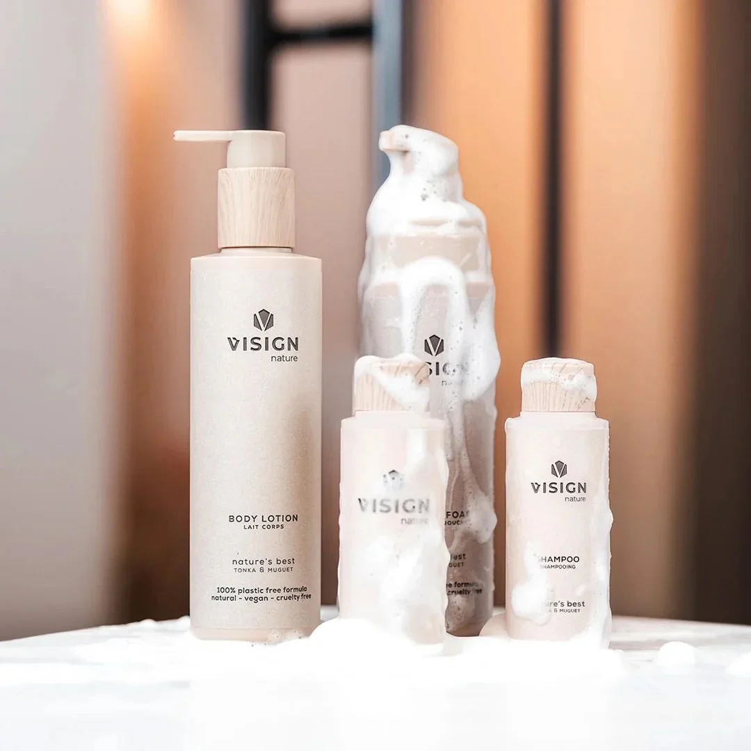 Visign Nature hefur það markmið að bjóða uppá vörur sem minnka notkun plasts og eru nær náttúrunni. Visign Nature vörurnar eru 95-98% lífrænar. Þær vörur sem eru gerðar úr bambus eru endurvinnanlegar en þeir bjóða uppá svokallað „refill“ Visign er með fallega tímalausa hönnun og því falleg á öllum heimilum. Vörurnar koma í þrem mismunandi ilmum: Nature´s Best, 23:55 og There´s No Planet B. Ilmirnir henta bæði fyrir karla og konur.